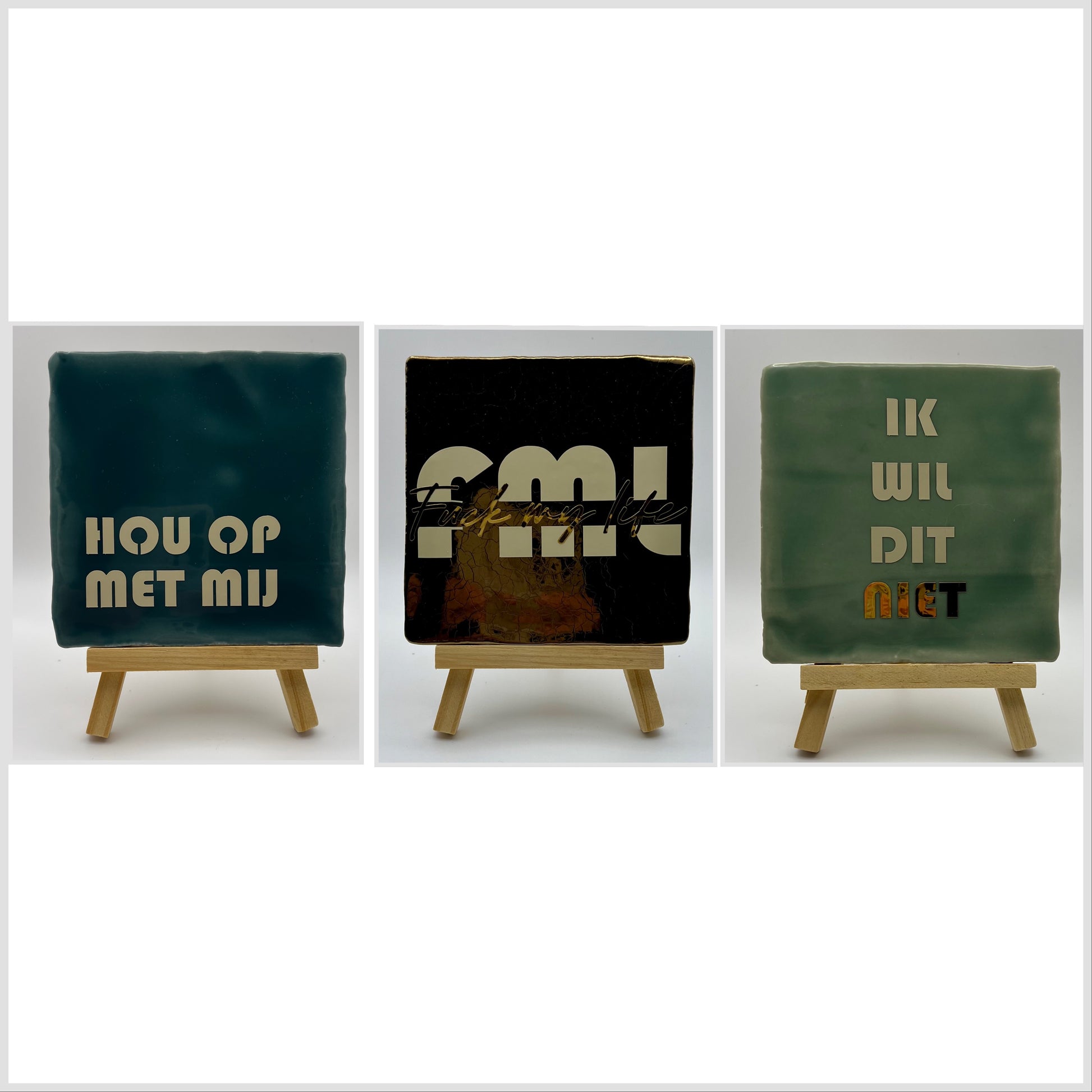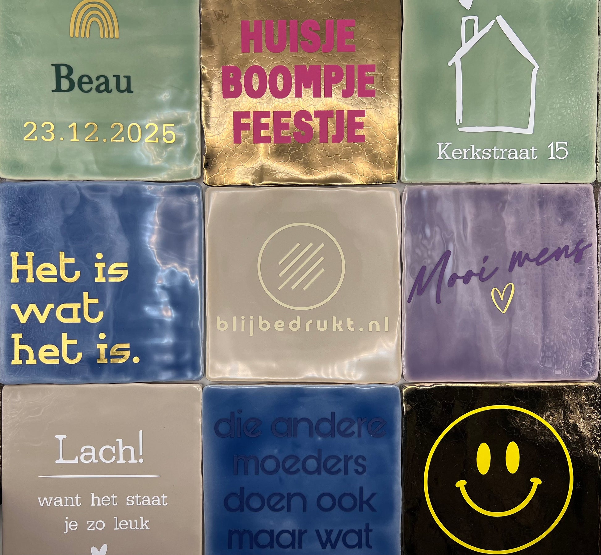 Liever zelf je tegelkleur en tekst kiezen? Dat kan! Stuur ons een mailtje via info@blijbedrukt.nl met je wensen, ideeën of een persoonlijke quote. Wij denken graag met je mee en maken samen een tegeltje dat helemaal bij jou past.